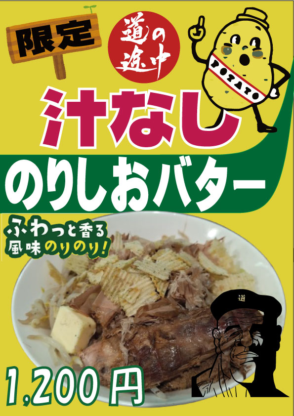 2/1(日)が法事のため、2/8(日)が『さいたまマラソン』に出場するために臨時休業となる代替として、前もって2週連続で、18:00~21:00の日曜夜営業を追加し、火の豚さんからレシピを教えていただいたのりしおバター汁なしの提供する最終日が明日1/25(日)に迫ってきました。